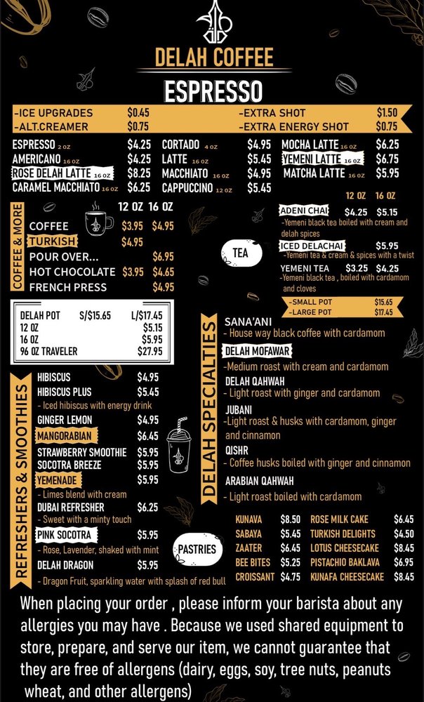 Introducing Delah Coffee Berkeley, a delightful haven for coffee and dessert lovers located conveniently near the UC Berkeley campus. This charming café specializes in Yemeni coffee, featuring unique offerings like the Delah Mofawar with cream and cardamom, and the Sana'ani black coffee enriched with spices. Each cup is prepared with love, showcasing rich flavors and aromas that transport you straight to Yemen.